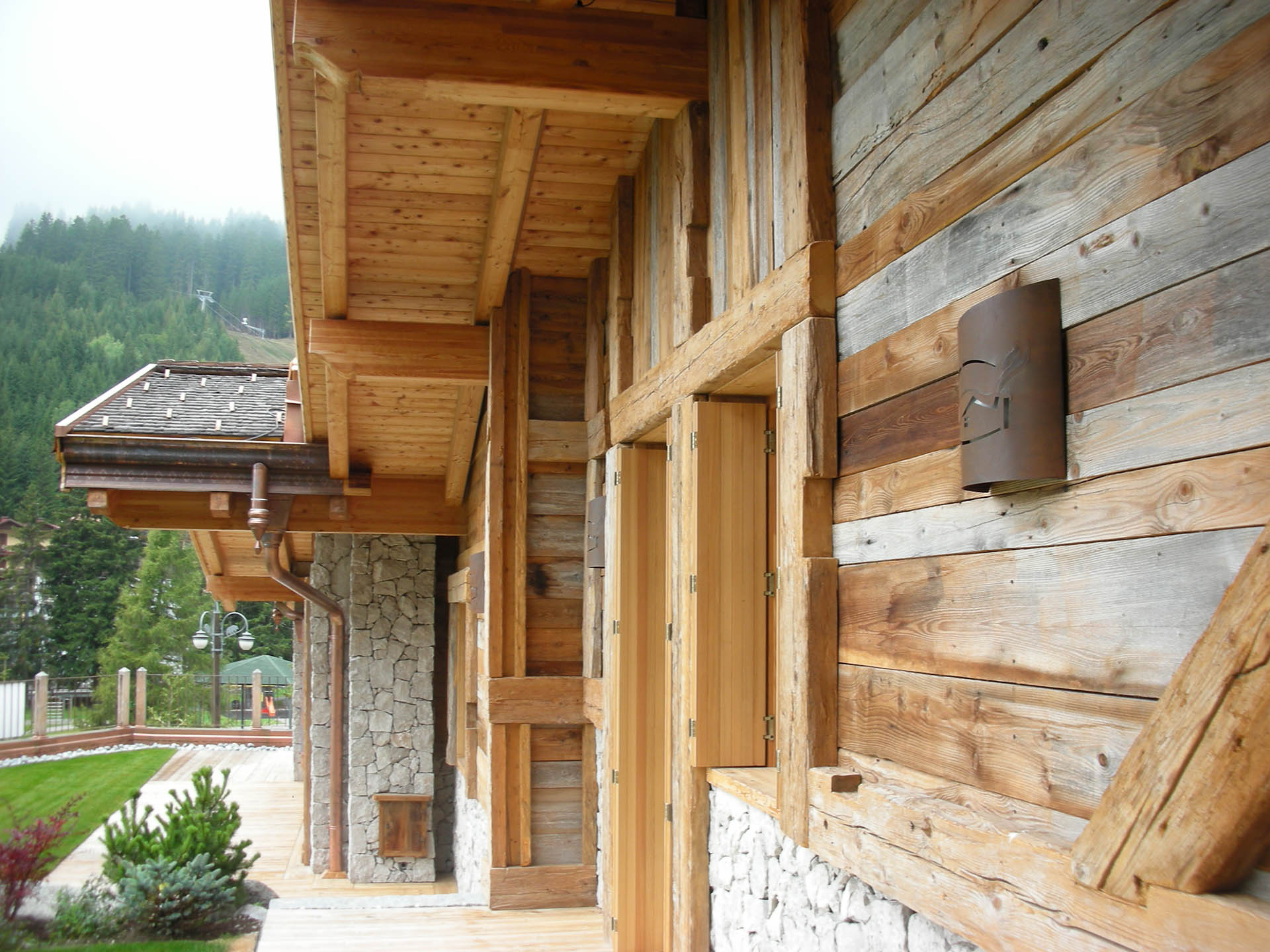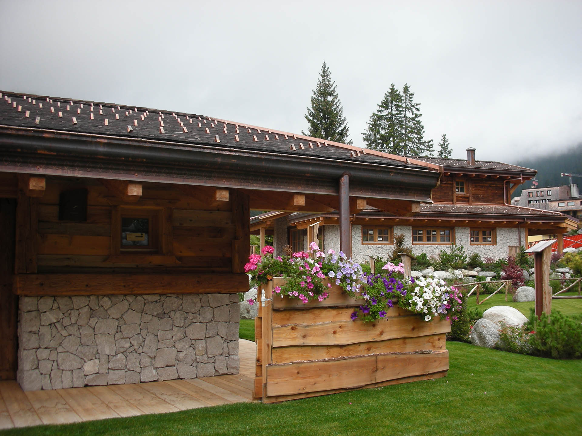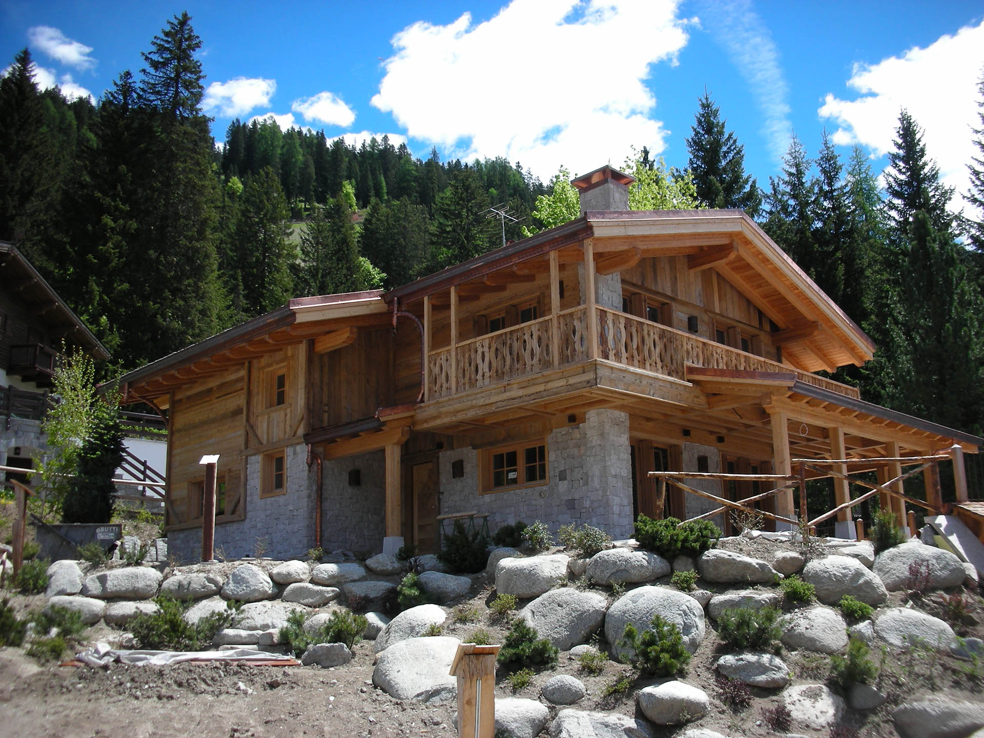 MADONNA DI CAMPIGLIO Demo ricostruzione di un volume esistente e distribuzione nel lotto di 4 chalet monofamiliari. il tutto sovrapposto ad un unico spazio interrato che interessa lo sviluppo del lotto esistente. Realizzazione totalmente in legno con rivestimenti in tavole originali antiche, basamento in pietra dolomia e copertura in scandole di larice tradizionali. Sistemazioni a verde di tutto il lotto con percorsi dedicati alle singole unità abitative. Gli edifici sono progettati in bioarchitettura con struttura completamente in legno a telaio con elevate caratteristiche tecniche tipo Casaclima A.